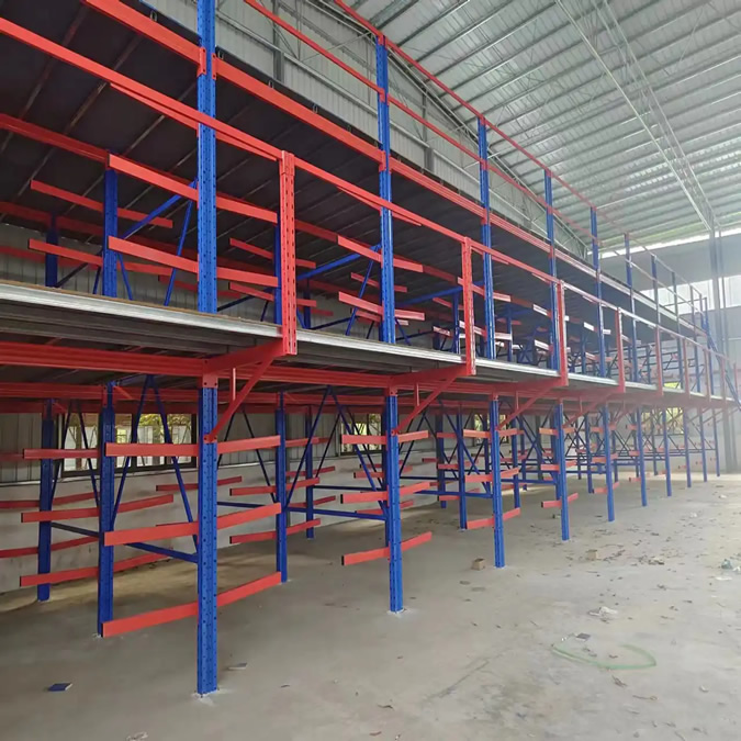 5、下层是货架形式,上层可以是平台也可以是货架的结构。底层货架既可以存储物料又是楼面的支撑,极具灵活性。